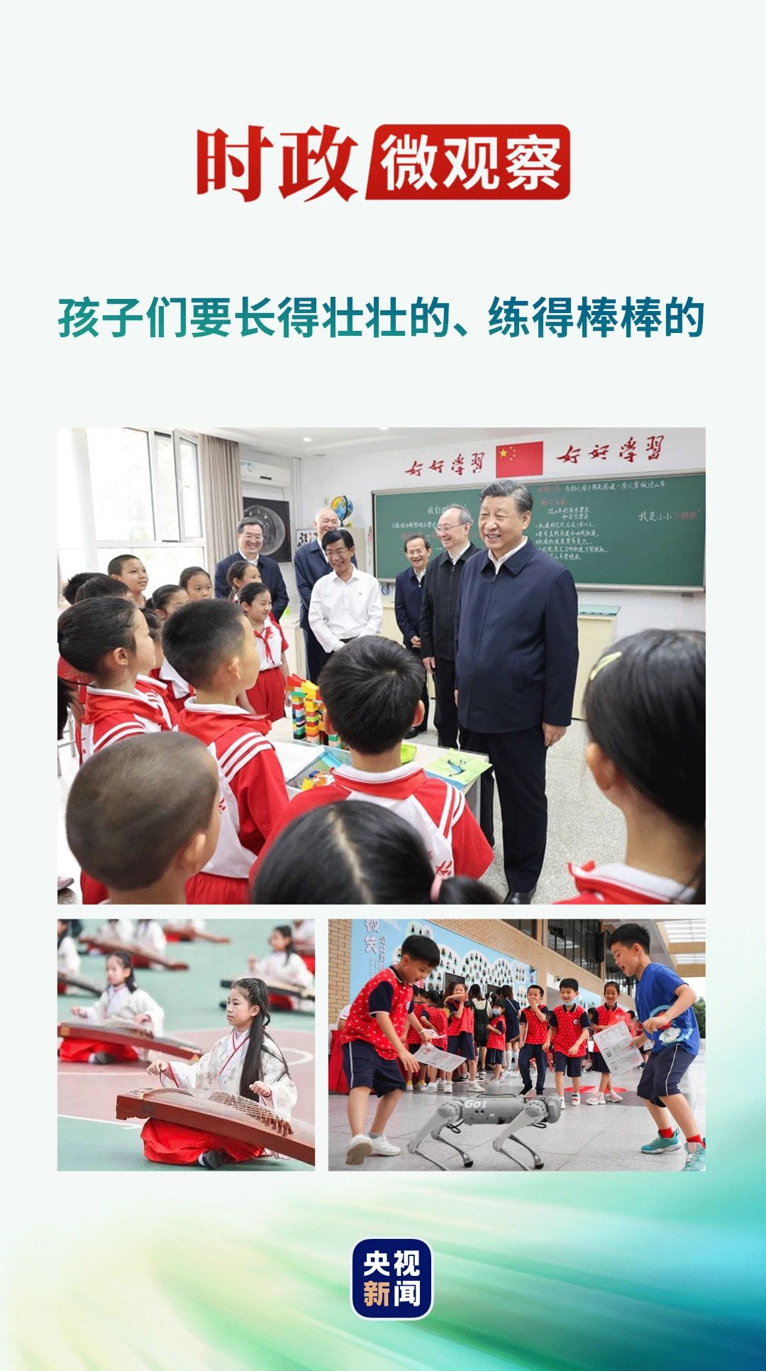 少年儿童是祖国的未来,是中华民族的希望。习近平总书记十分关心广大少年儿童的健康成长,强调要“推动落实好‘双减’工作要求,促进学生全面发展”“在教育‘双减’中做好科学教育加法,播撒科学种子,激发青少年好奇心、想象力、探求欲”。 把学生过重的学业负担和校外培训负担减下来,培养其探索性、创新性思维品质,这一“加”一“减”中饱含着总书记对促进孩子们健康全面发展的殷切期望。